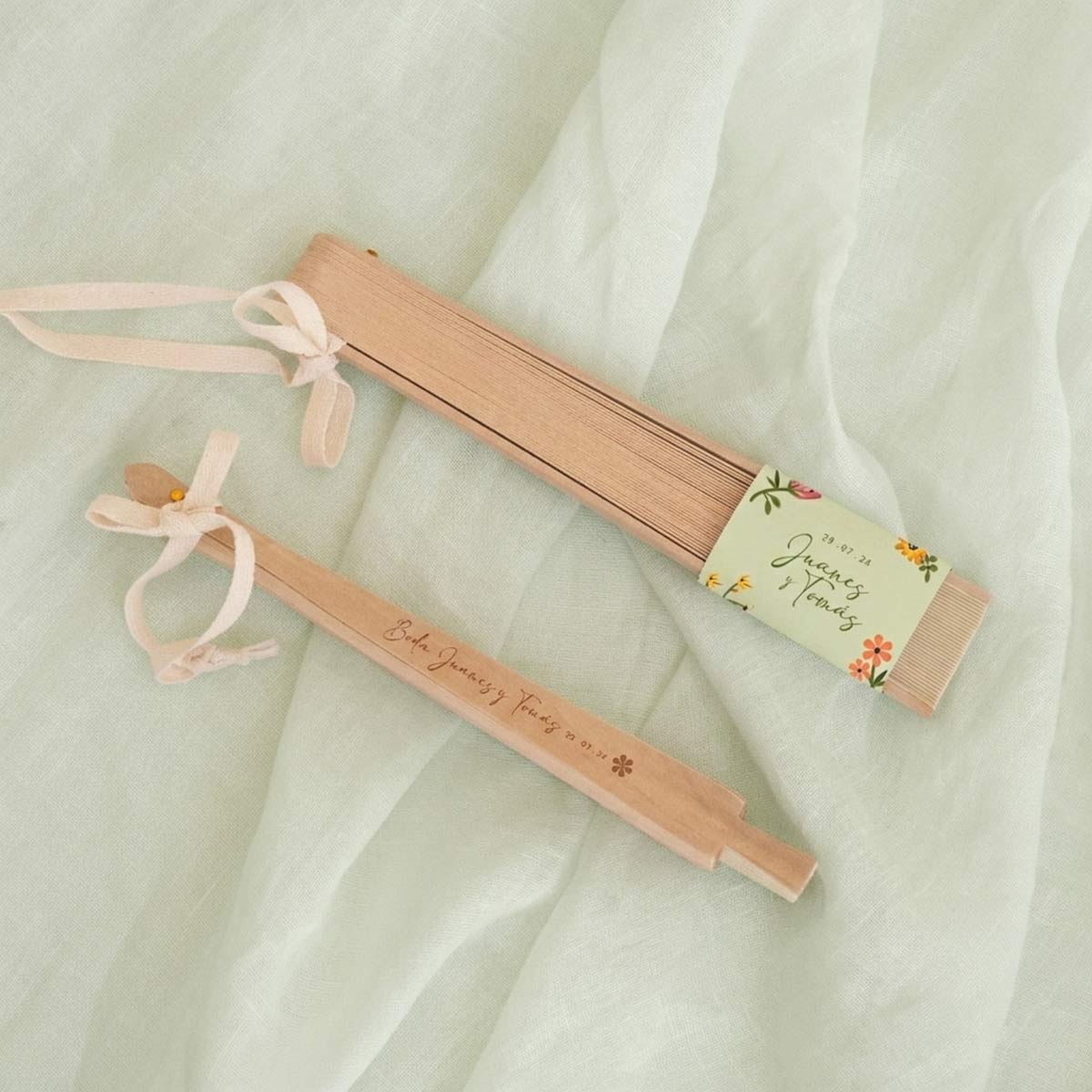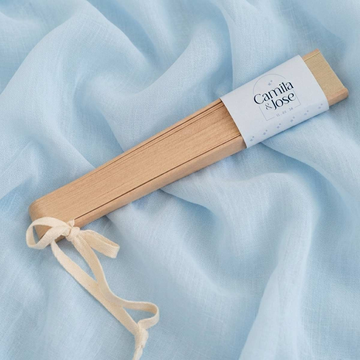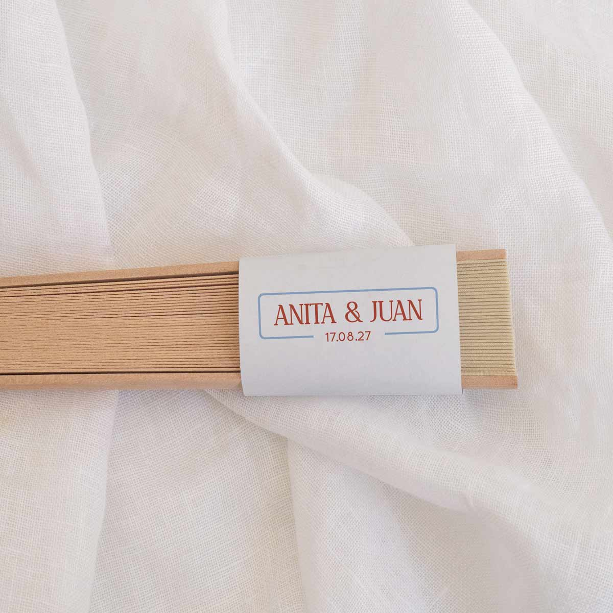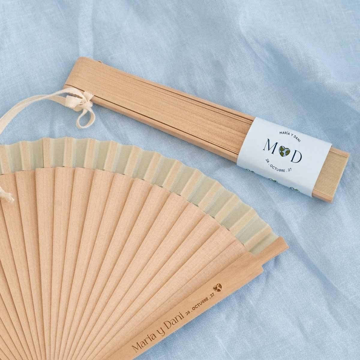 Un detalle elegante, útil y muy especial para regalar a tus invitados en bodas. Este abanico en color beige, fabricado en madera natural, es perfecto para acompañar los días más cálidos del evento, aportando frescura y un toque sofisticado a la celebración. Su diseño ligero y clásico lo convierte en un recuerdo bonito y funcional que podrán seguir usando después del gran día. Incluye cordón para colgar, lo que facilita su uso y transporte durante la boda.