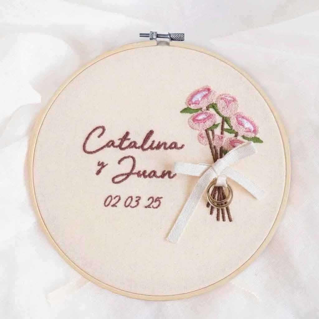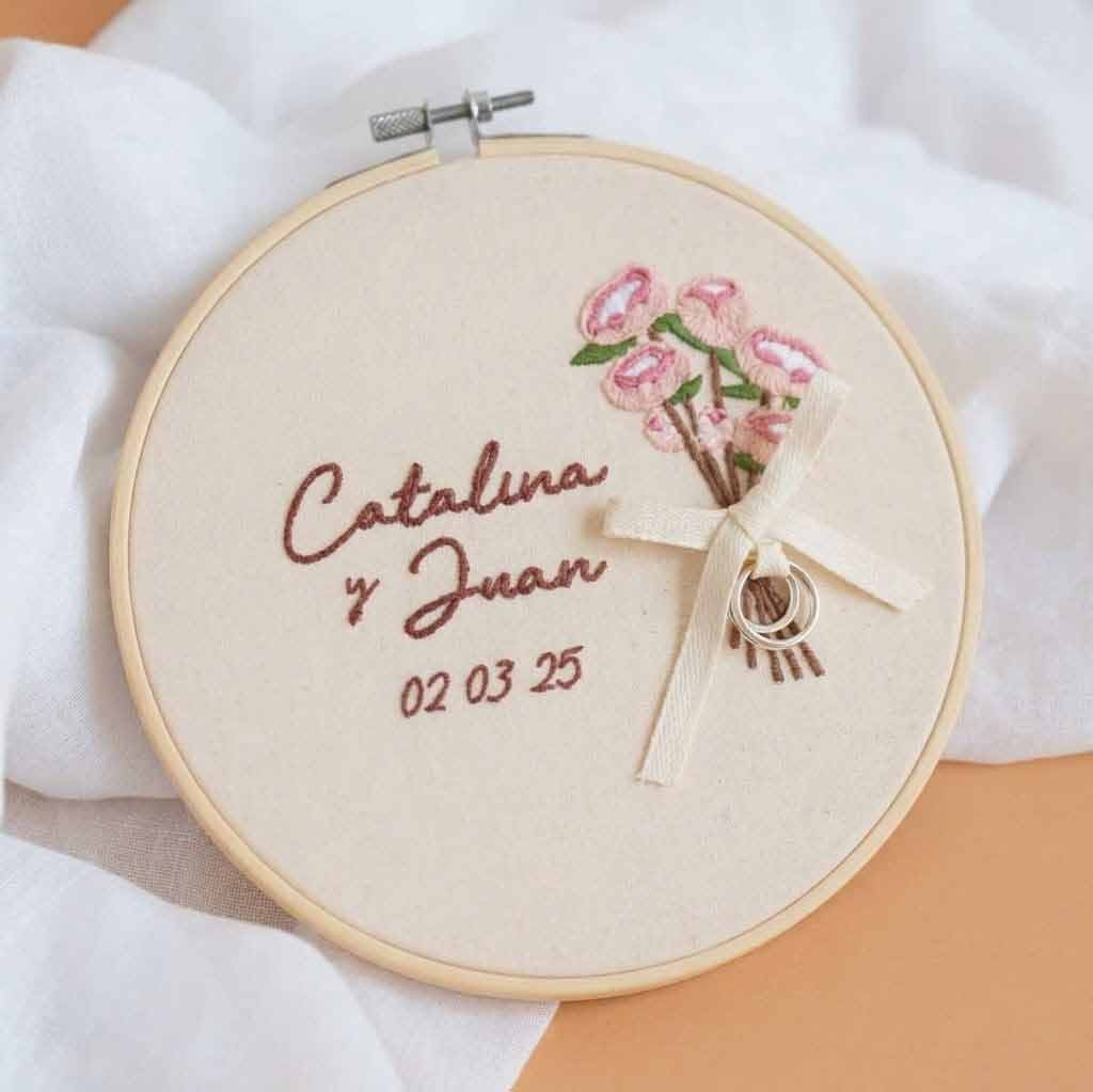 Detalles únicos para momentos únicos y especiales. Así es es este porta alianzas bordado con el que llevar los anillos al altar se convertirá en uno de los momentos más fotografiables de la boda.