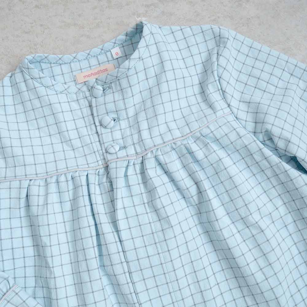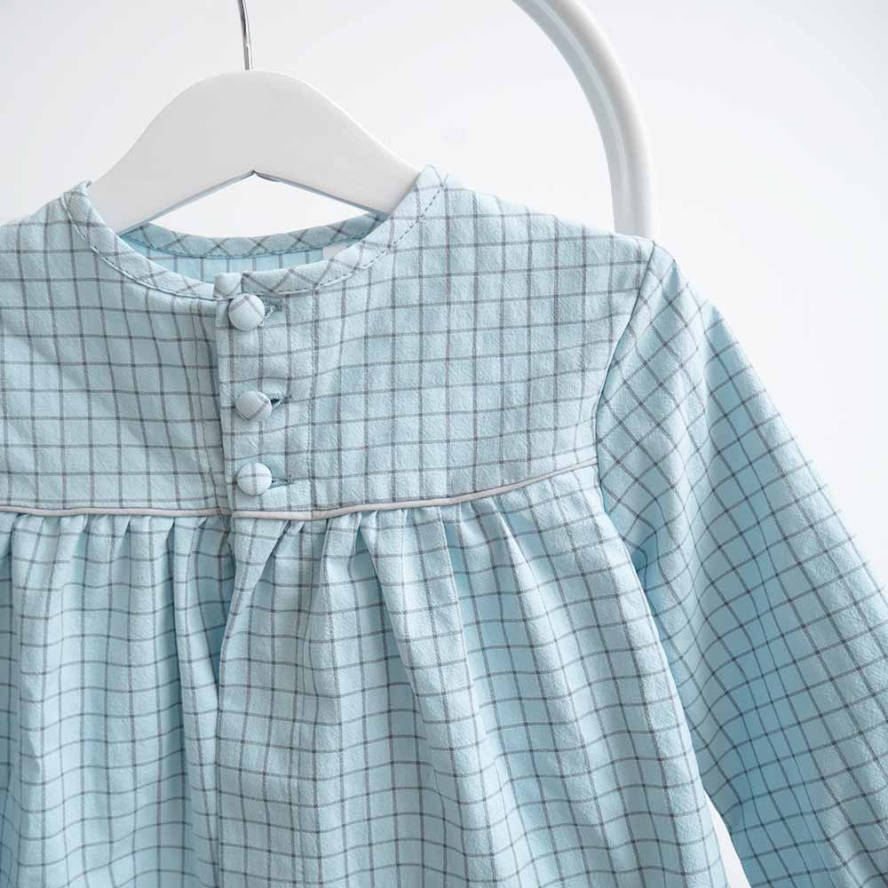 Blusón fallero para bebé de cuadritos azul y gris – Moñaditas