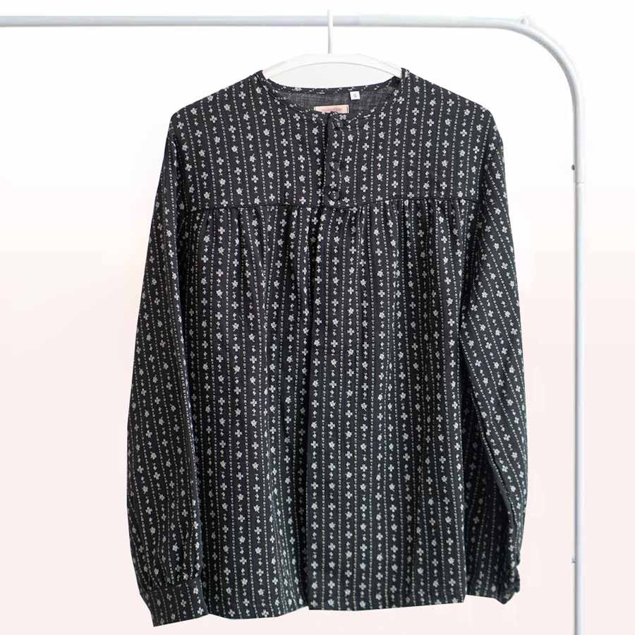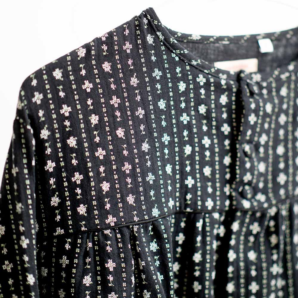 Blusón fallero negro con flores grises de la marca moñaditas