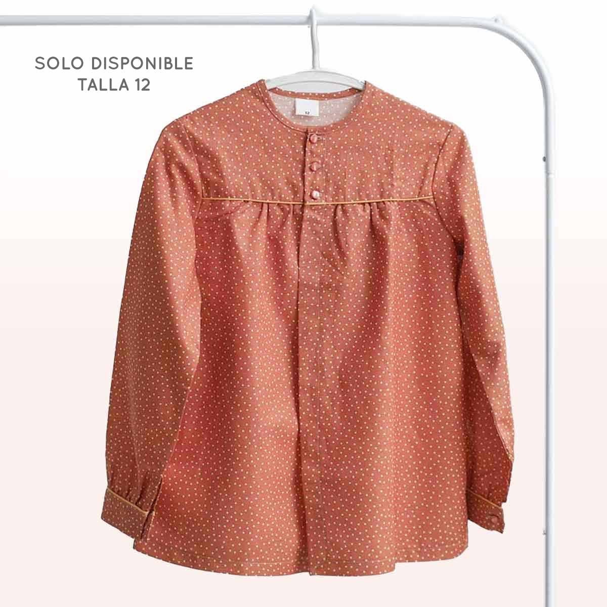 Elegante diseño de blusón con estampado de lunares en color ocre y vivo en tono a juego. Es un color muy combinable y unisex. Puedes personalizarlo con el nombre bordado. ¡Súper!