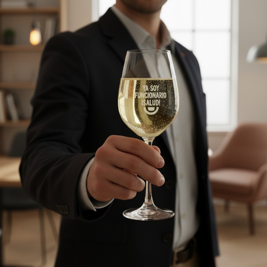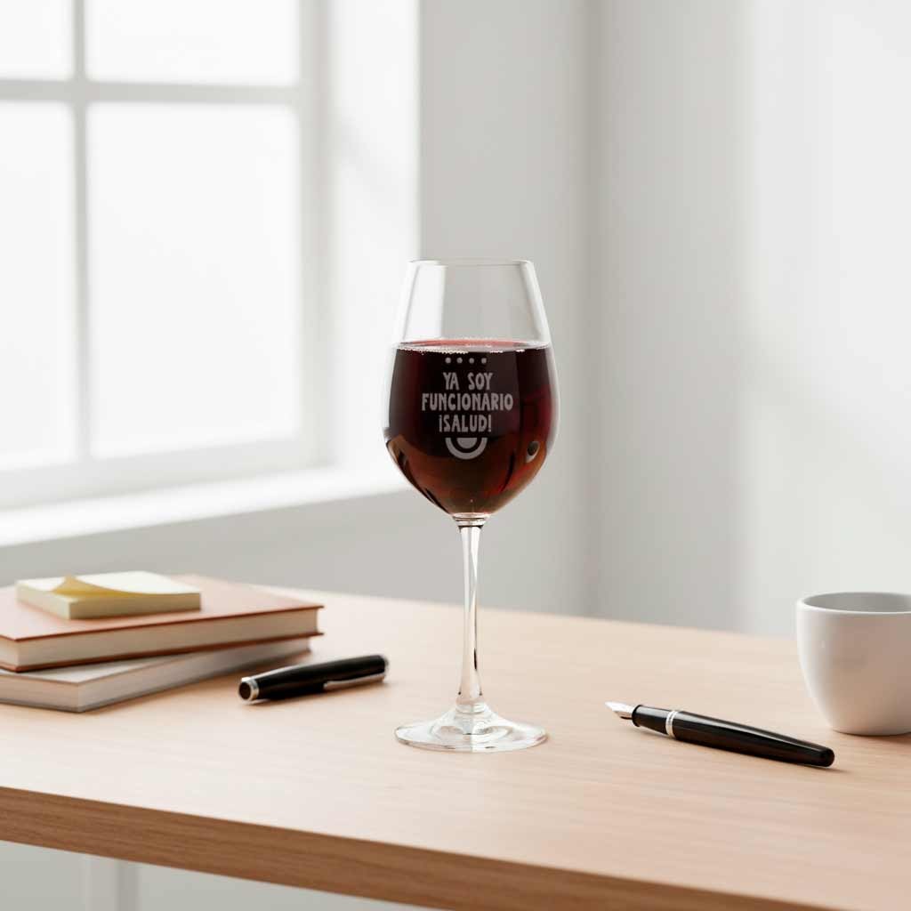 🍷 ¡Funcionari@ nuevo, copa nueva! Esta elegante copa de vino es el regalo perfecto para ese opositor u opositora que ha alcanzado su meta: ¡ya es funcionari@!