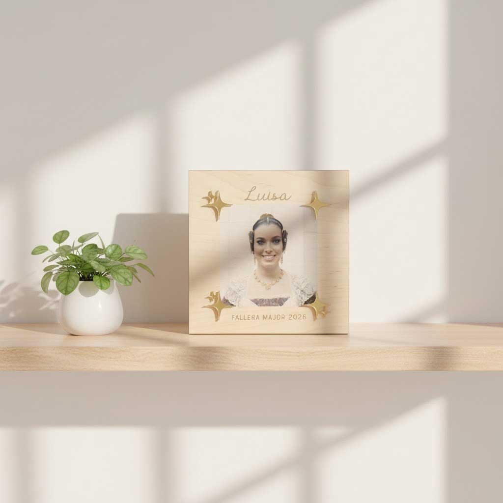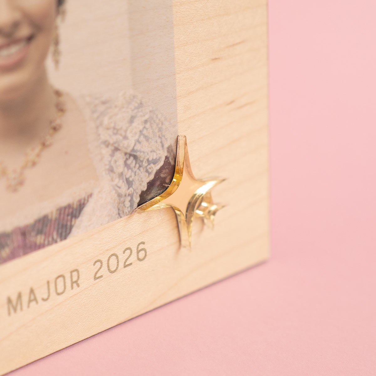 Cuadro de madera que guarda un recuerdo para toda la vida: la foto, el nombre, el cargo y el año de la FM, FMI o Dama.