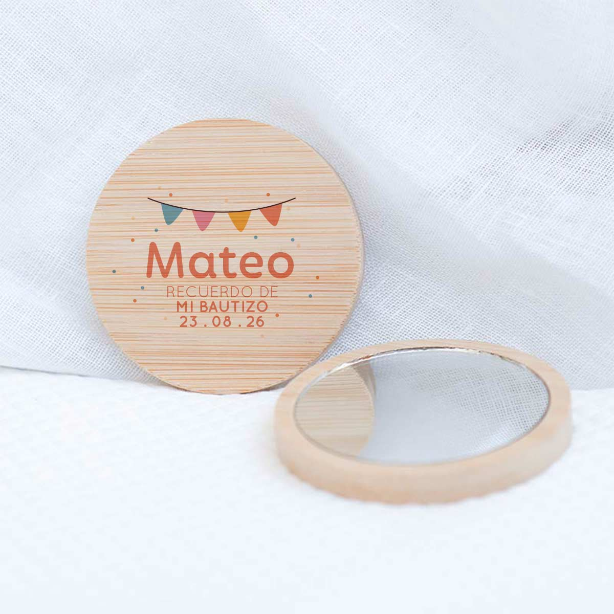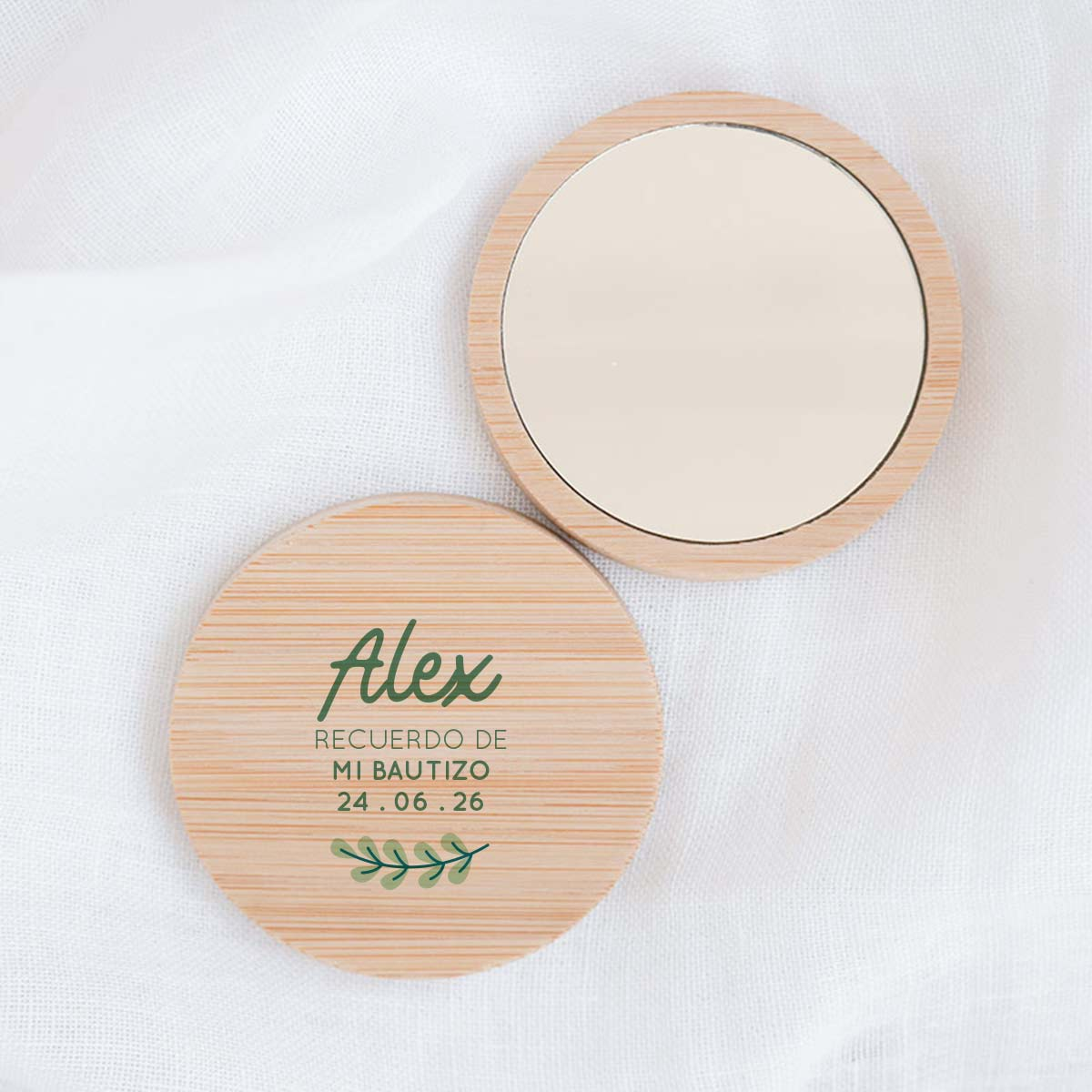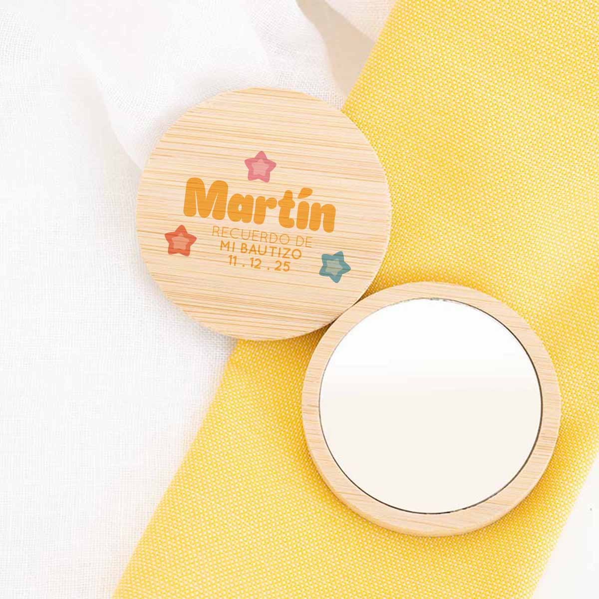 Sorprende a tus invitados con un recuerdo de bautizo original, elegante y realmente útil. Este espejo de bambú es el detalle perfecto para celebrar el nacimiento de tu bebé o su bautizo, combinando diseño natural y funcionalidad en un regalo que no quedará olvidado en un cajón.