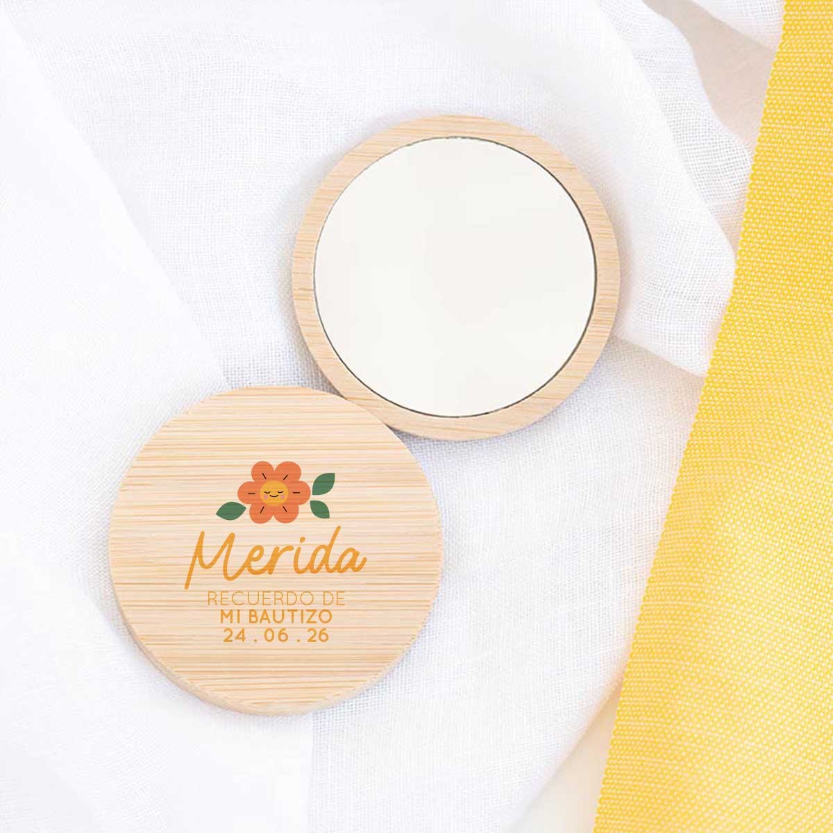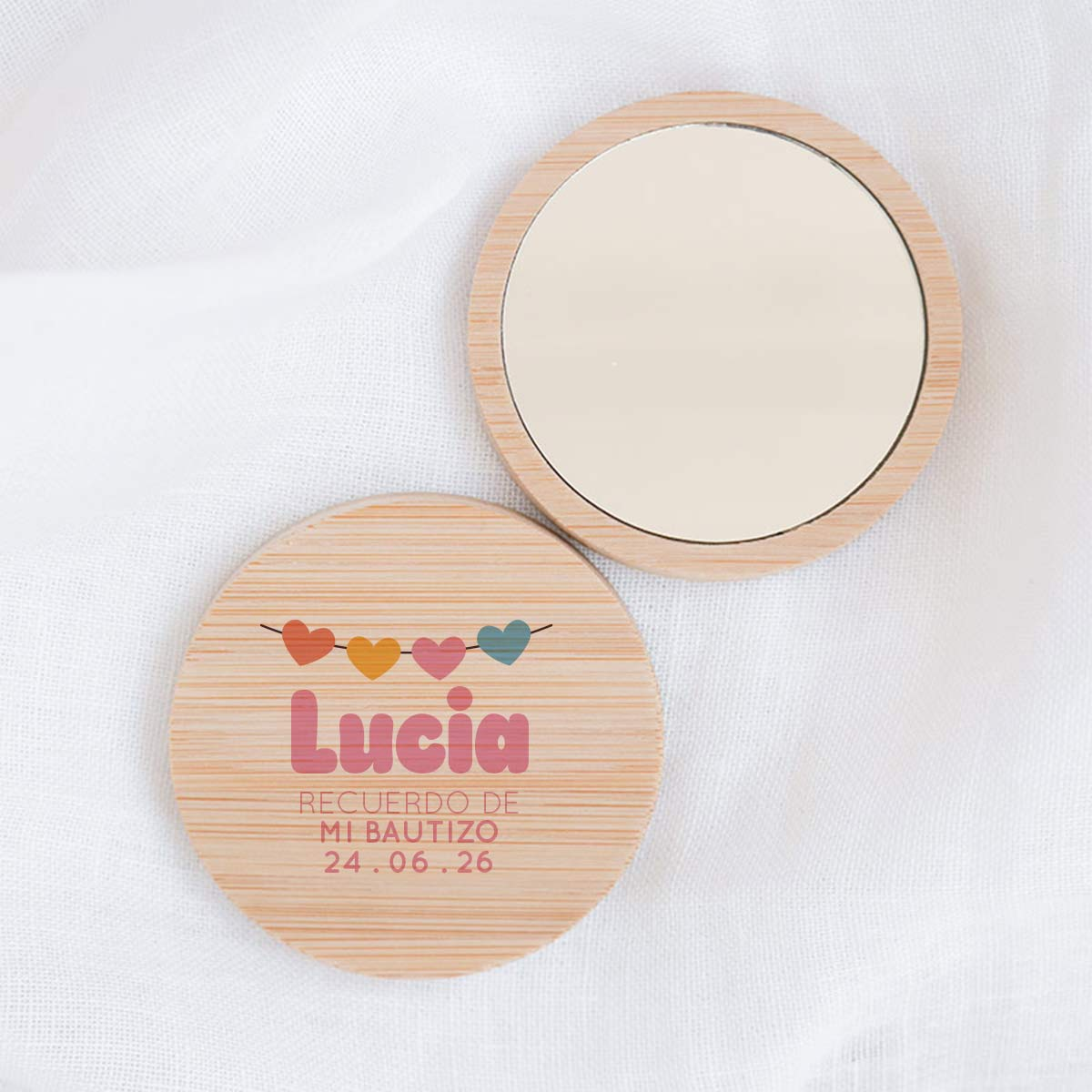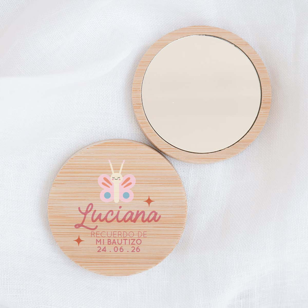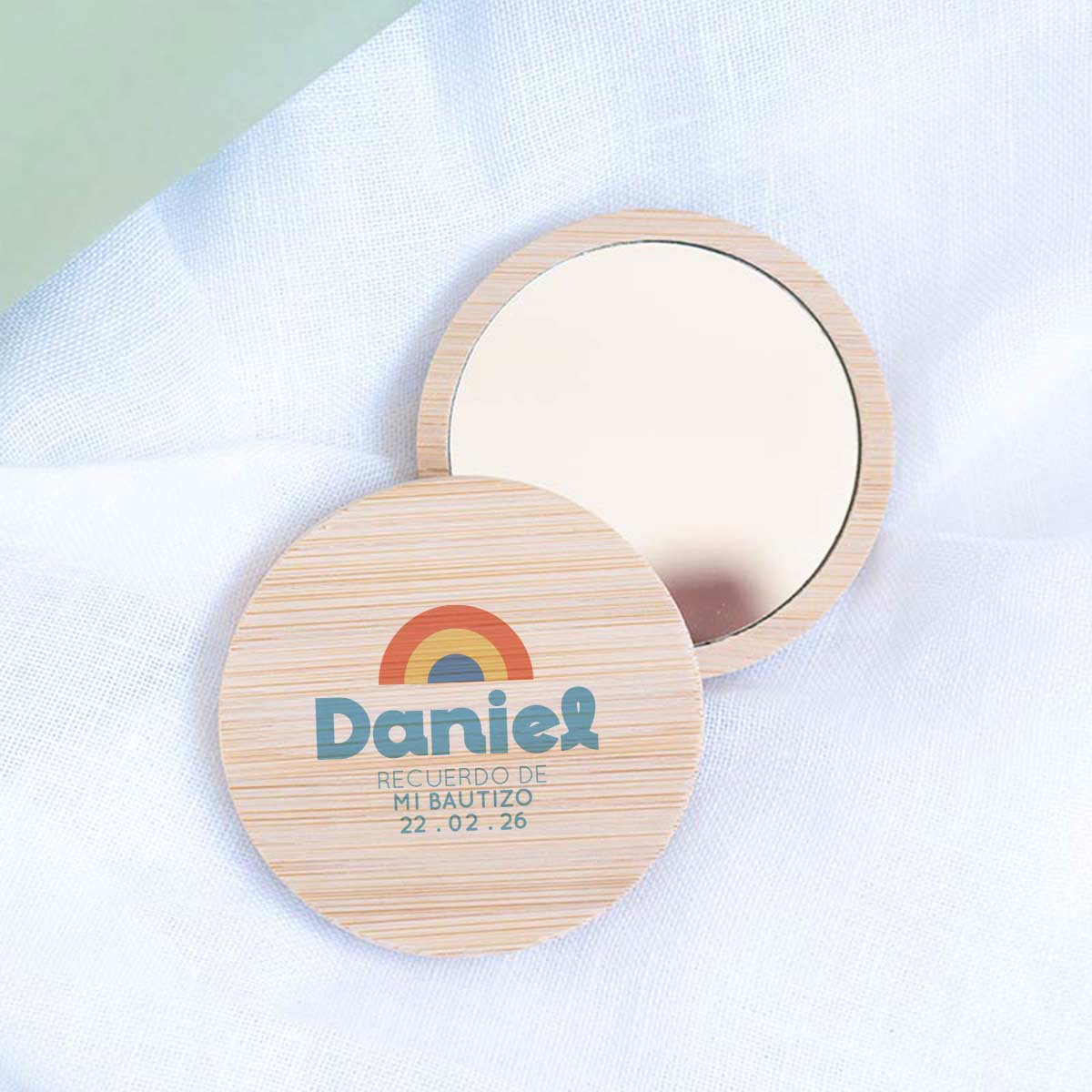 Sorprende a tus invitados con un recuerdo de bautizo original, elegante y realmente útil. Este espejo de bambú es el detalle perfecto para celebrar el nacimiento de tu bebé o su bautizo, combinando diseño natural y funcionalidad en un regalo que no quedará olvidado en un cajón.