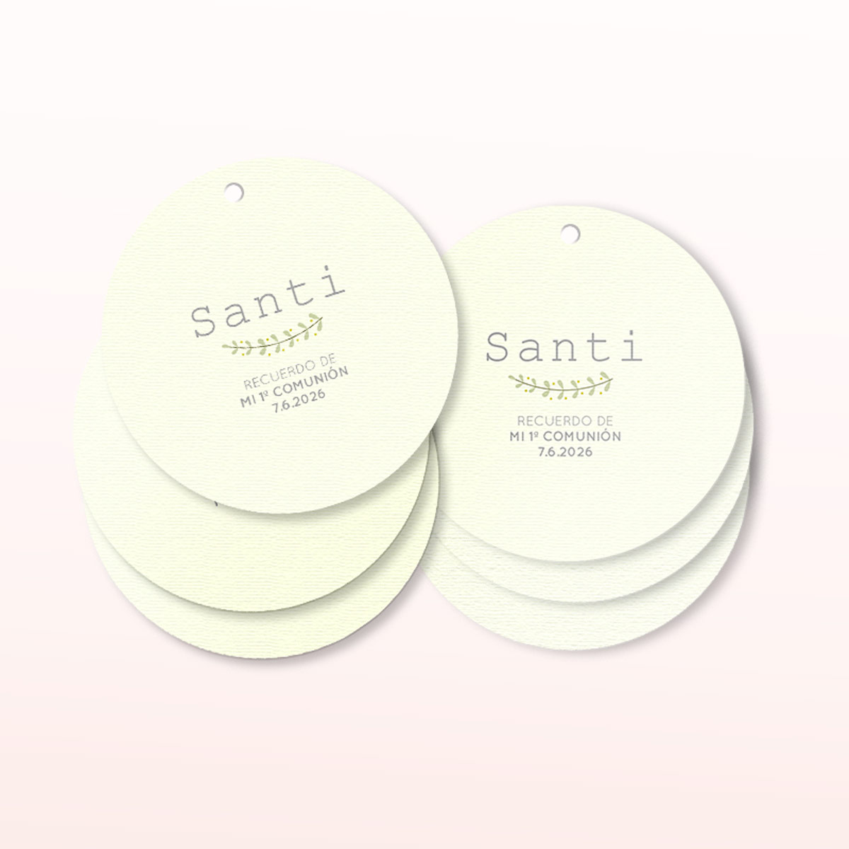 Se pueden personalizar con el nombre del niño o niña y la fecha de la comunión, creando un detalle único y muy especial. También puedes elegir entre los diseños disponibles o enviarnos el tuyo propio por email o WhatsApp para una personalización total.
