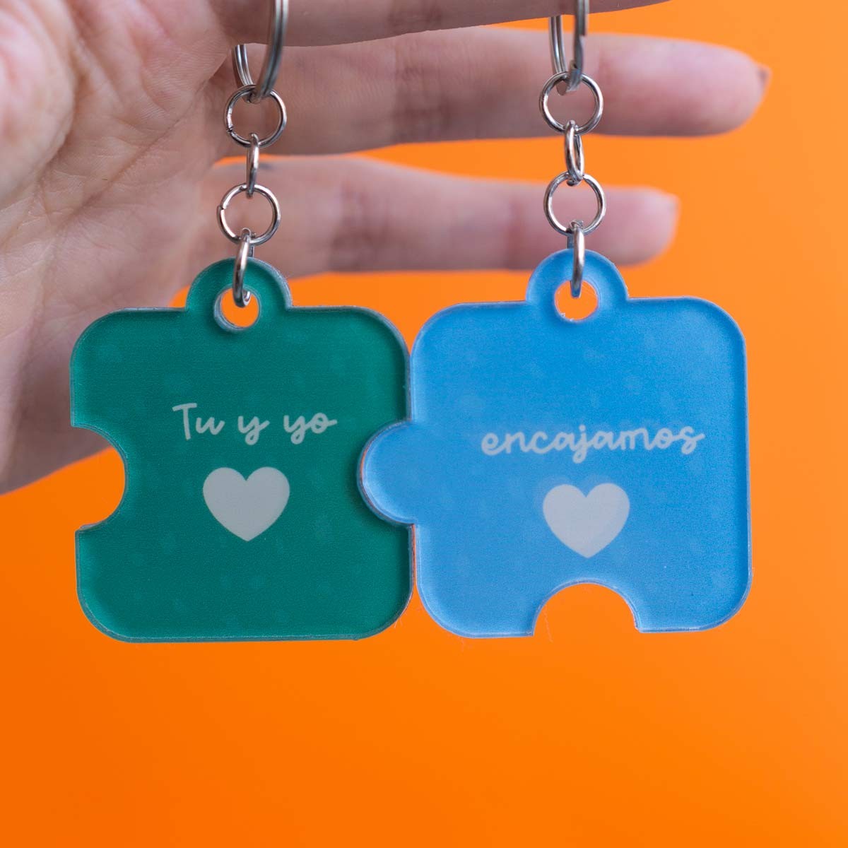 Llaveros puzzle personalizables con los nombres. Dos piezas de puzzle que encajan, se unen y conectan como vuestros corazones.