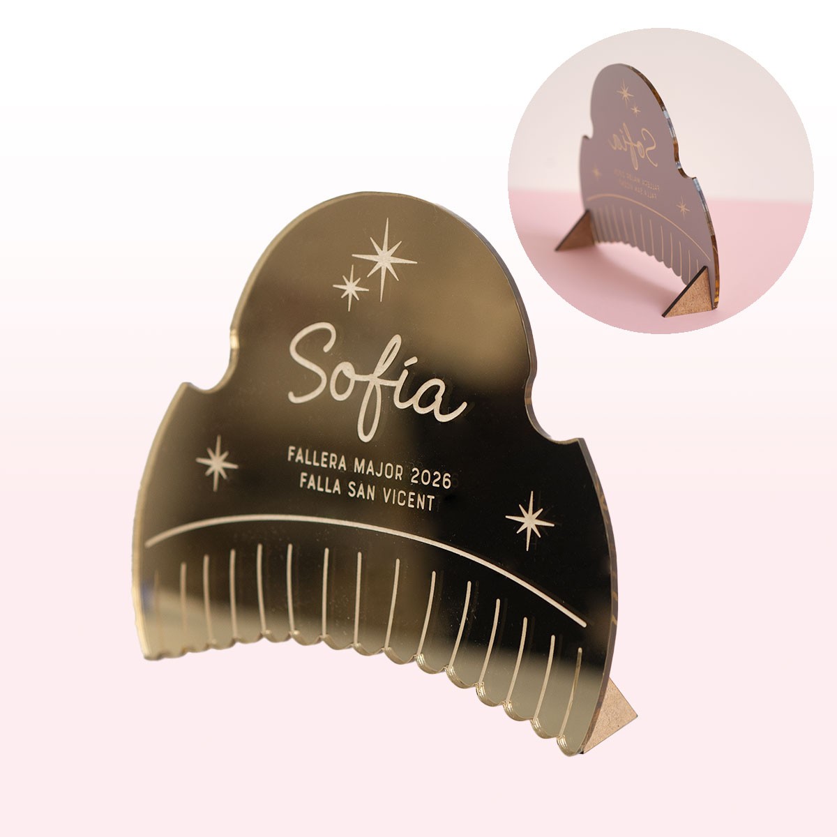 Se puede personalizar con nombre, cargo y año, convirtiéndola en un detalle único para Falleras Mayores o Falleras de Honor. Ideal para quienes quieren regalar algo con significado.