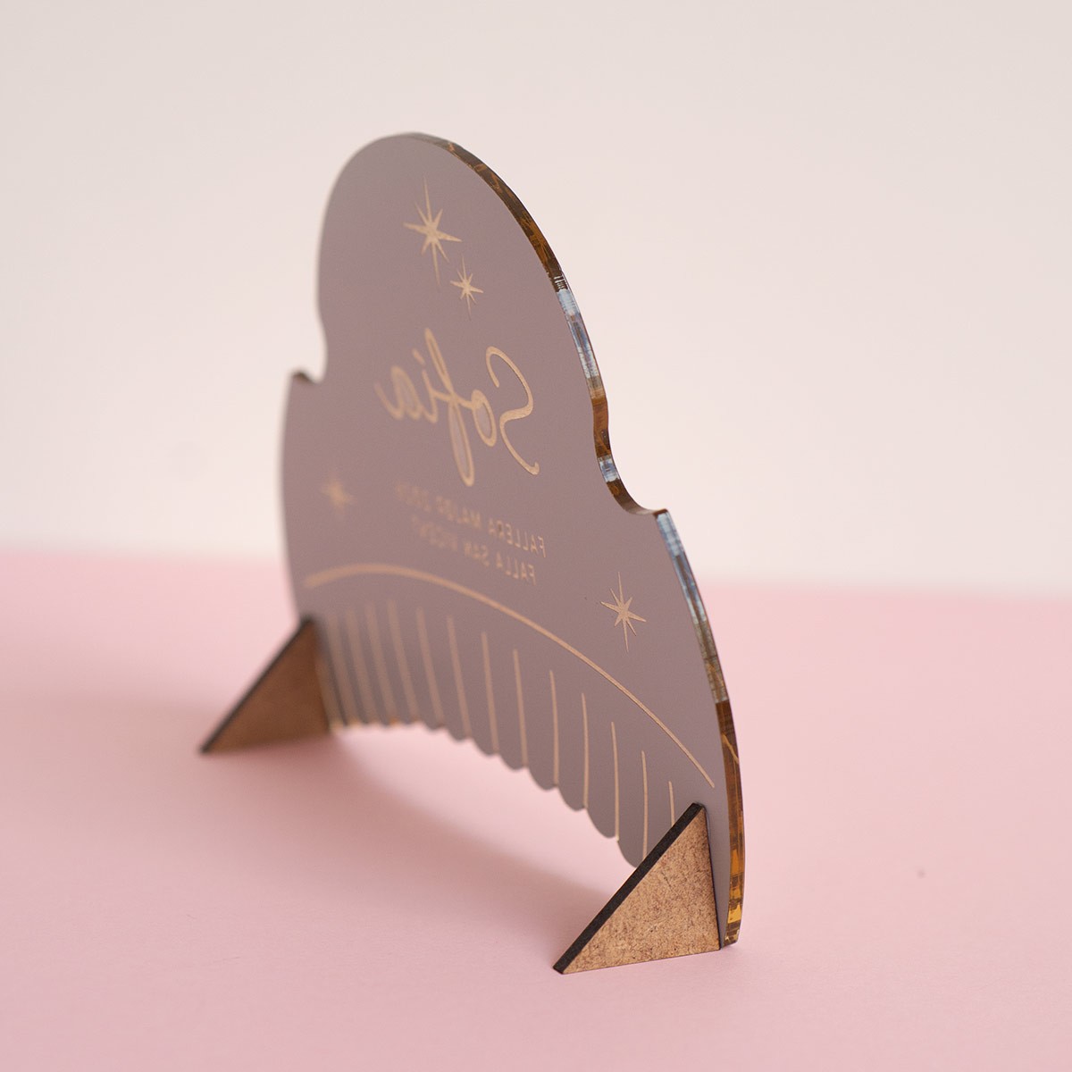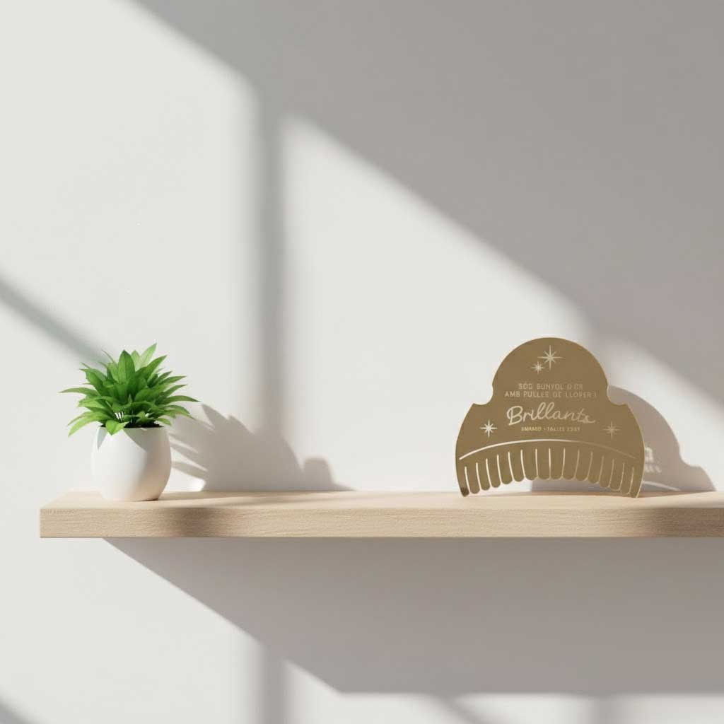 Sorprende con un regalo que transmite emoción y tradición. Esta Peineta d’Or es de metacrilato color oro, grabada a láser, pensada para decorar un rincón especial de la casa y convertirse en un recuerdo único.