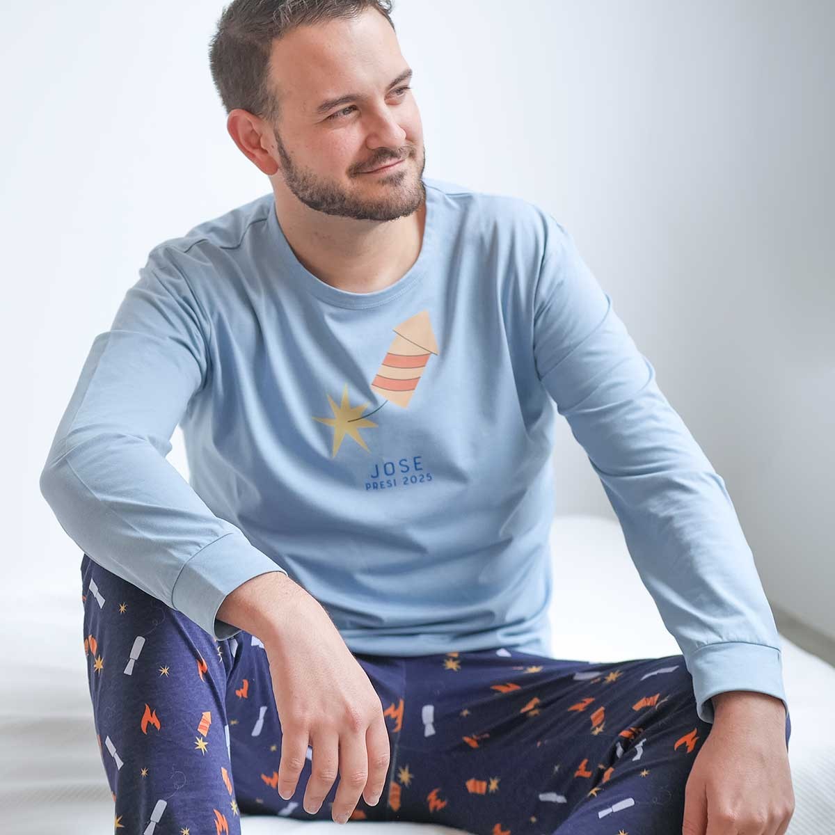 Los amantes de las Fallas y la pólvora tienen en este kit su regalo perfecto. Este conjunto está formado por el pijama con dibujos de petardos falleros y llamas + las zapatillas de ir por casa súper calentitas.