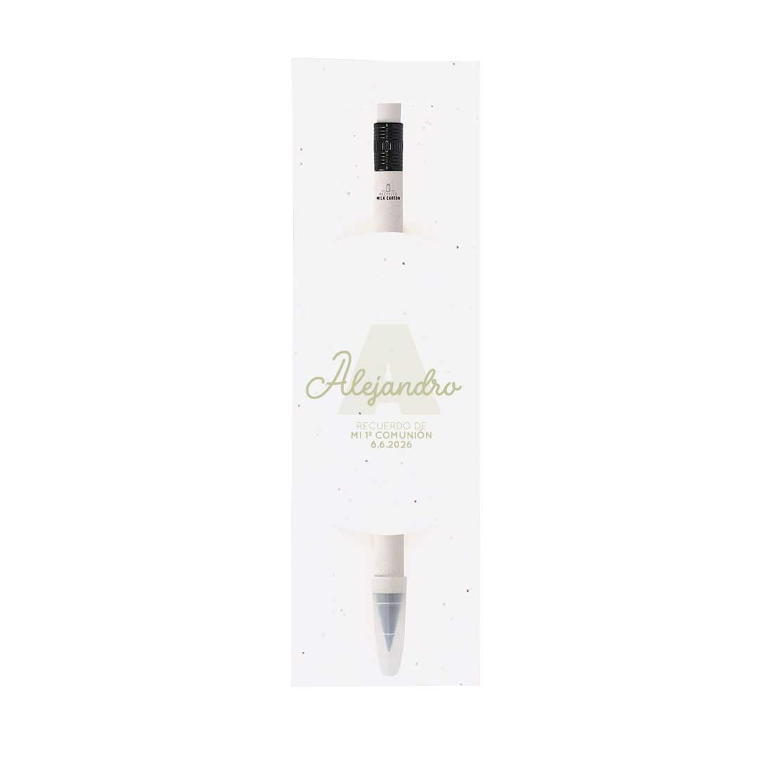 Un regalo original y sostenible para tus invitados de Comunión 💚 Este lápiz eterno, fabricado con cartones de leche reciclados, es reutilizable, práctico y adorable. Viene en funda plantable con semillas de petunia, ¡para que puedan sembrarlo y ver crecer su flor!
