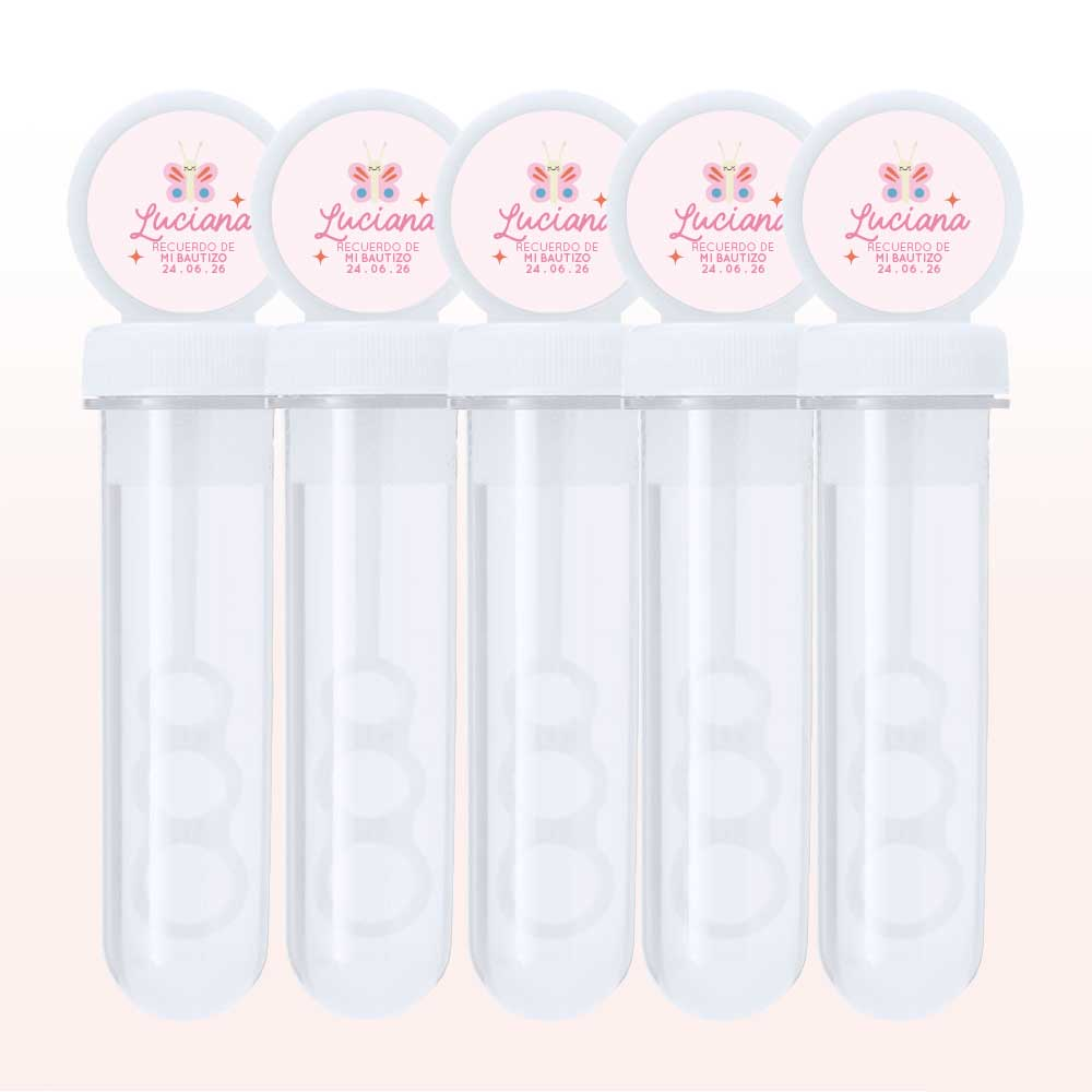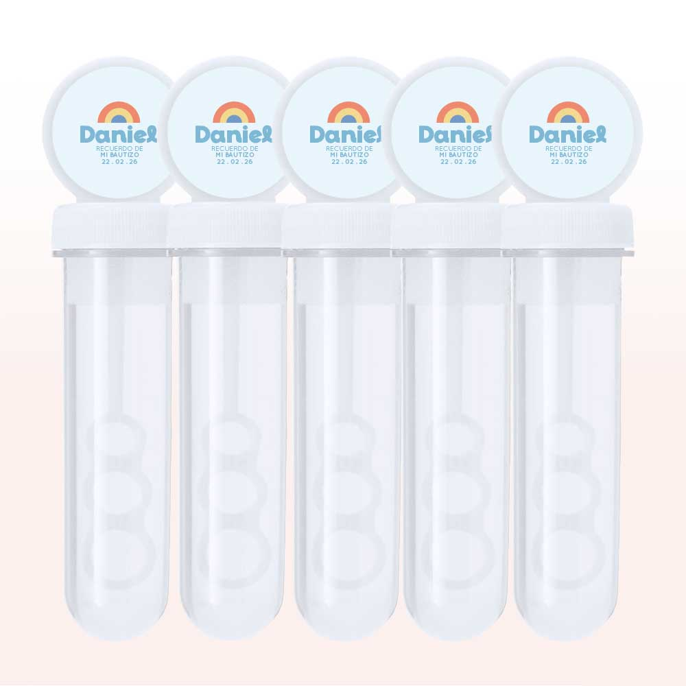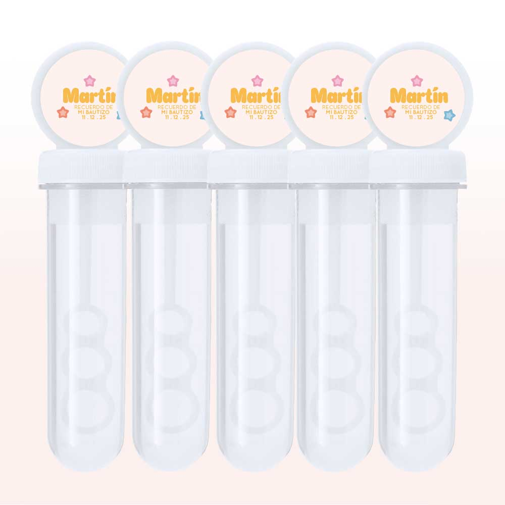Un regalo divertido y original para los niños invitados al bautizo. Este pompero permite crear pompas de tres tamaños distintos y viene con líquido incluido (30 ml), para que los peques puedan empezar a jugar desde el primer momento.