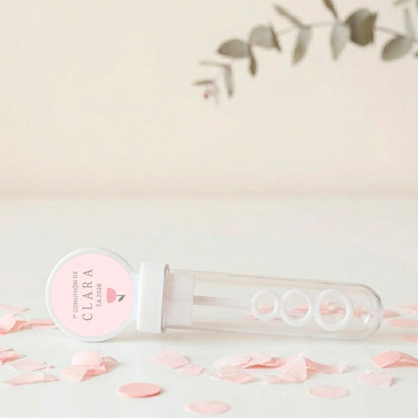 Un regalo divertido y original para los niños invitados a la comunión. Este pompero permite crear pompas de tres tamaños distintos y viene con líquido incluido (30 ml) para que los peques puedan empezar a jugar desde el primer momento.