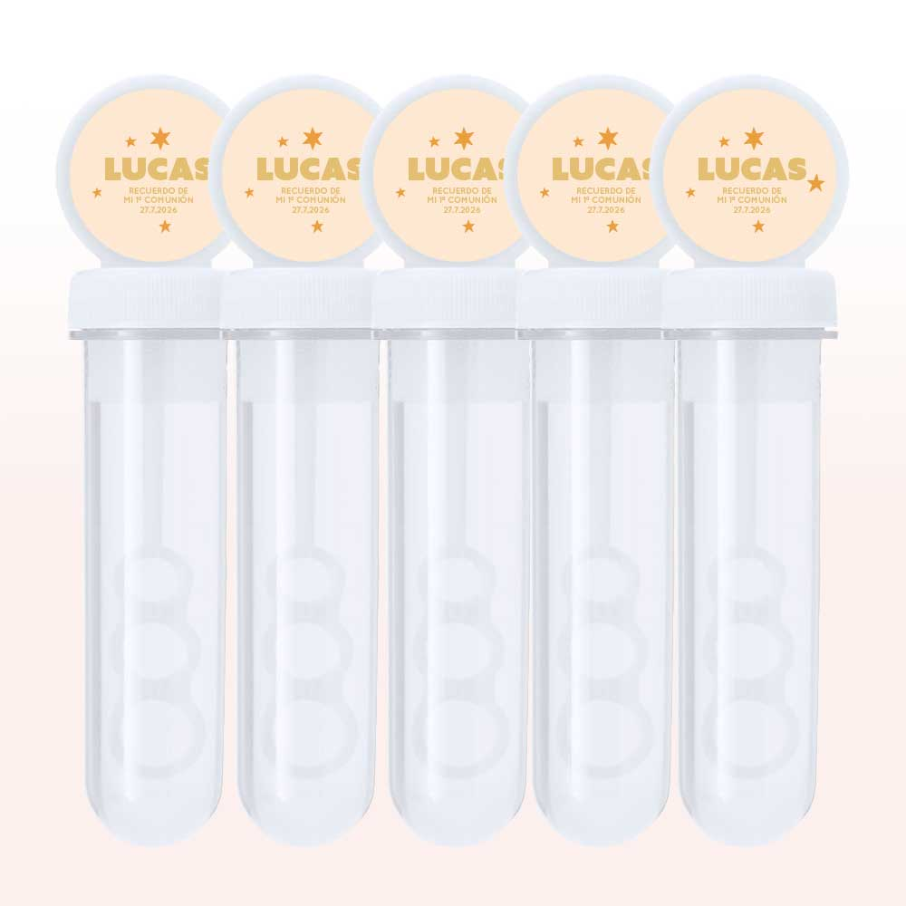 Se personaliza con el nombre de cada niño o con el nombre del o la comuniante, y también tienes la opción de subir tu propio diseño para un detalle totalmente único y exclusivo.