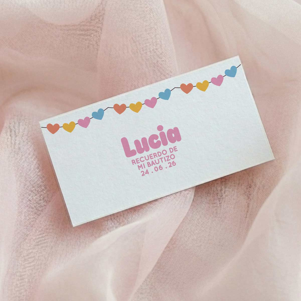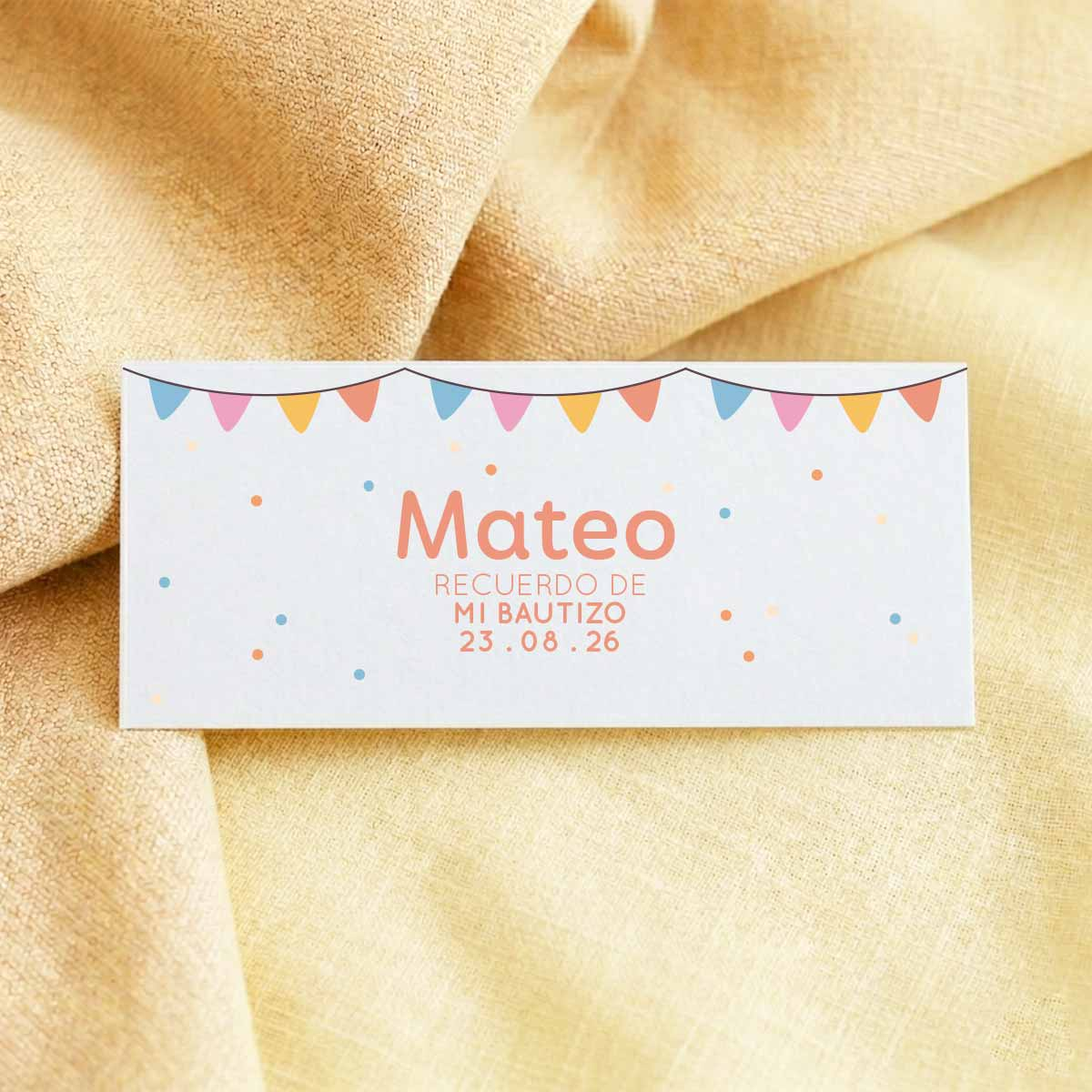 Elige el diseño del packaging e indica el nombre, la fecha y los datos del bautizo.
