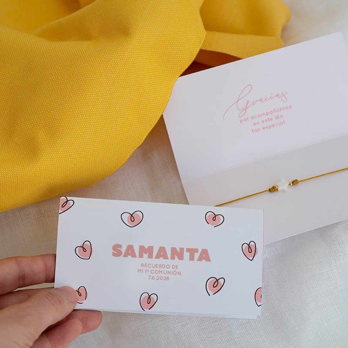 Elige el diseño que más te guste para el packaging, indica el nombre, fecha y datos del evento y te lo prepararemos con mucho mimo.