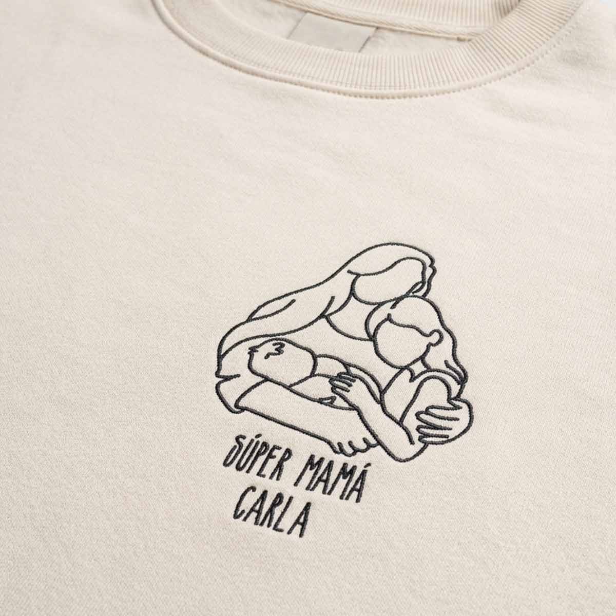 Convierte una foto en un recuerdo único y lleno de emoción. Creamos un bordado minimalista a partir de la imagen de mamá o papá, dando forma a una sudadera especial, original y perfecta para regalar en cualquier ocasión como el día de la Madre, día del Padre o Navidad.