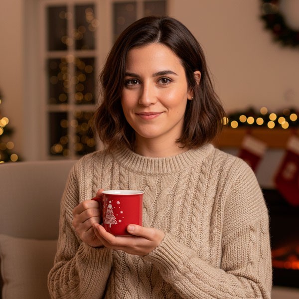 Un regalo lleno de cariño para hacer sonreír a esa persona especial. Esta taza de cerámica, con su árbol grabado en bajo relieve, invita a disfrutar cada sorbo con espíritu navideño y calidez. Perfecta para esos momentos de abrazo en forma de bebida, con 280 ml de ternura en cada taza.