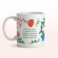Taza "Crecer contigo es lo más" llenita de flores de agradecimiento. Ideal para regalar a las maestras, seños, profes, auxiliares o monitoras.