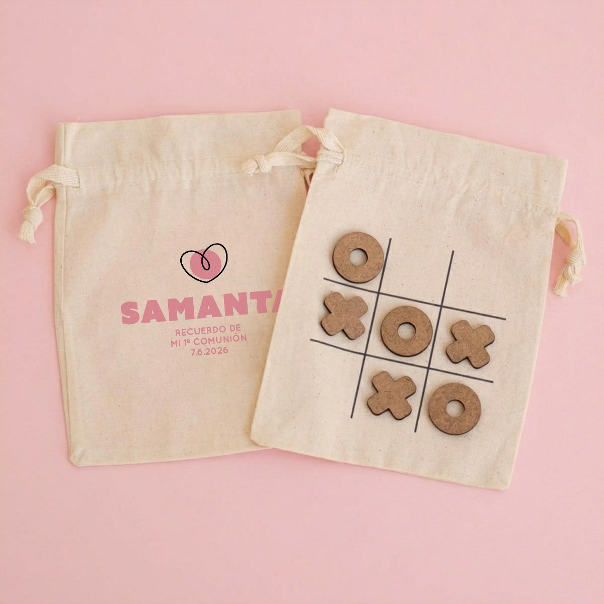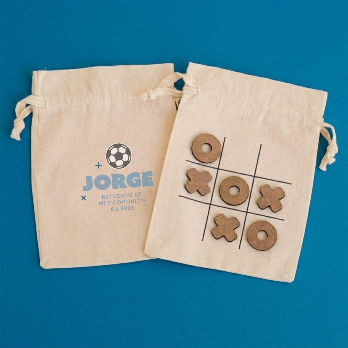 Sorprende a los más pequeños con este tres en raya personalizado, un detalle original, divertido y perfecto para regalar en una Primera Comunión. Un clásico juego de siempre que se reinventa en una versión bonita y práctica, ideal para que los niños se diviertan y se lleven un recuerdo especial de este día tan importante.