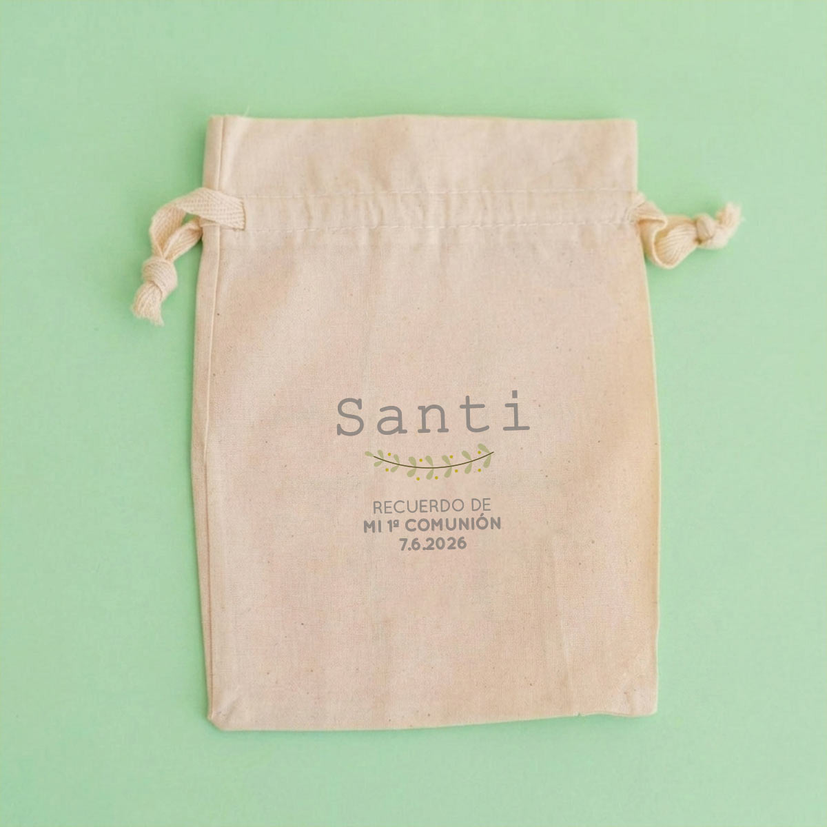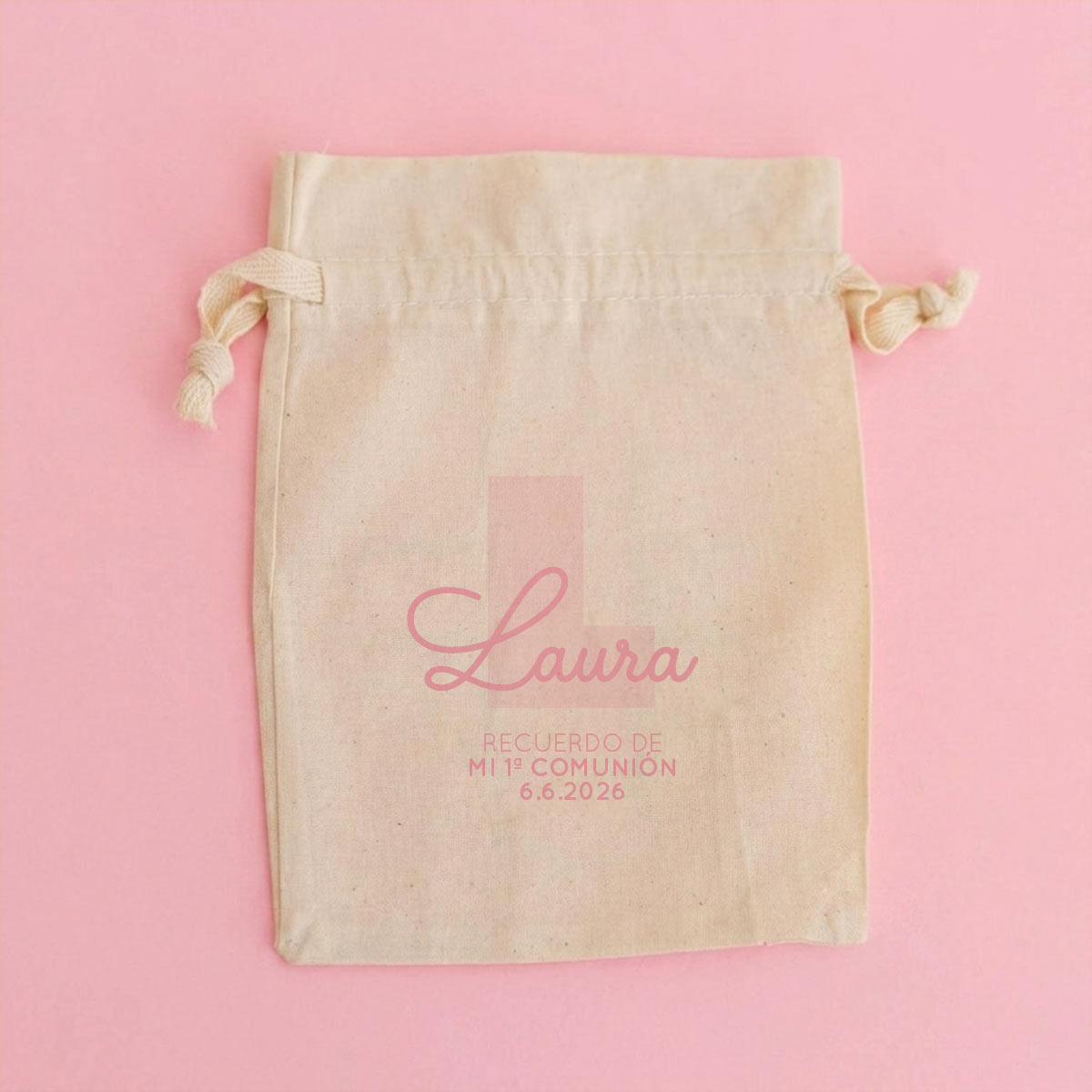 Se personaliza en la otra cara con el nombre de los niños invitados o con el nombre del protagonista de la Comunión, creando un detalle único y con mucho significado para cada invitado.