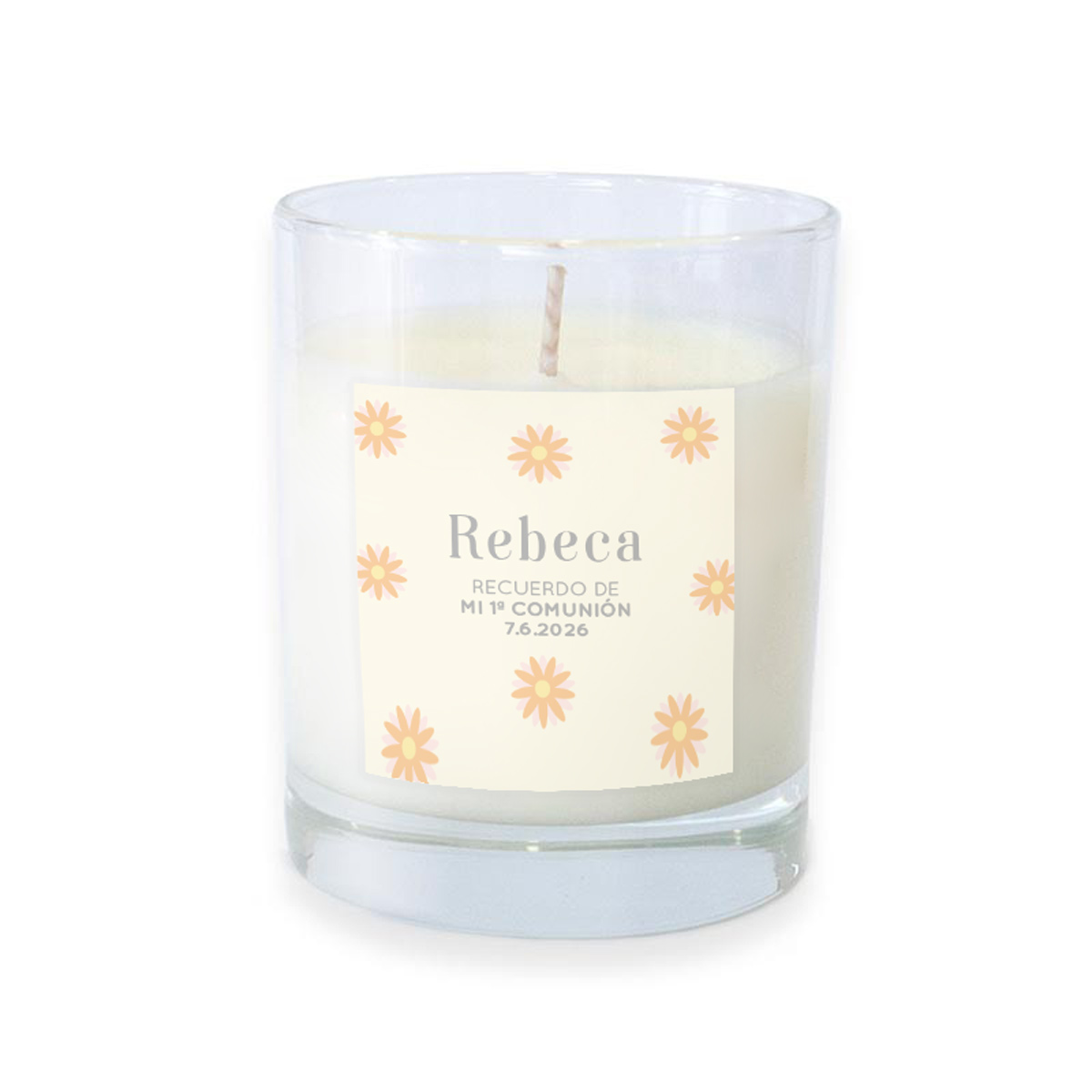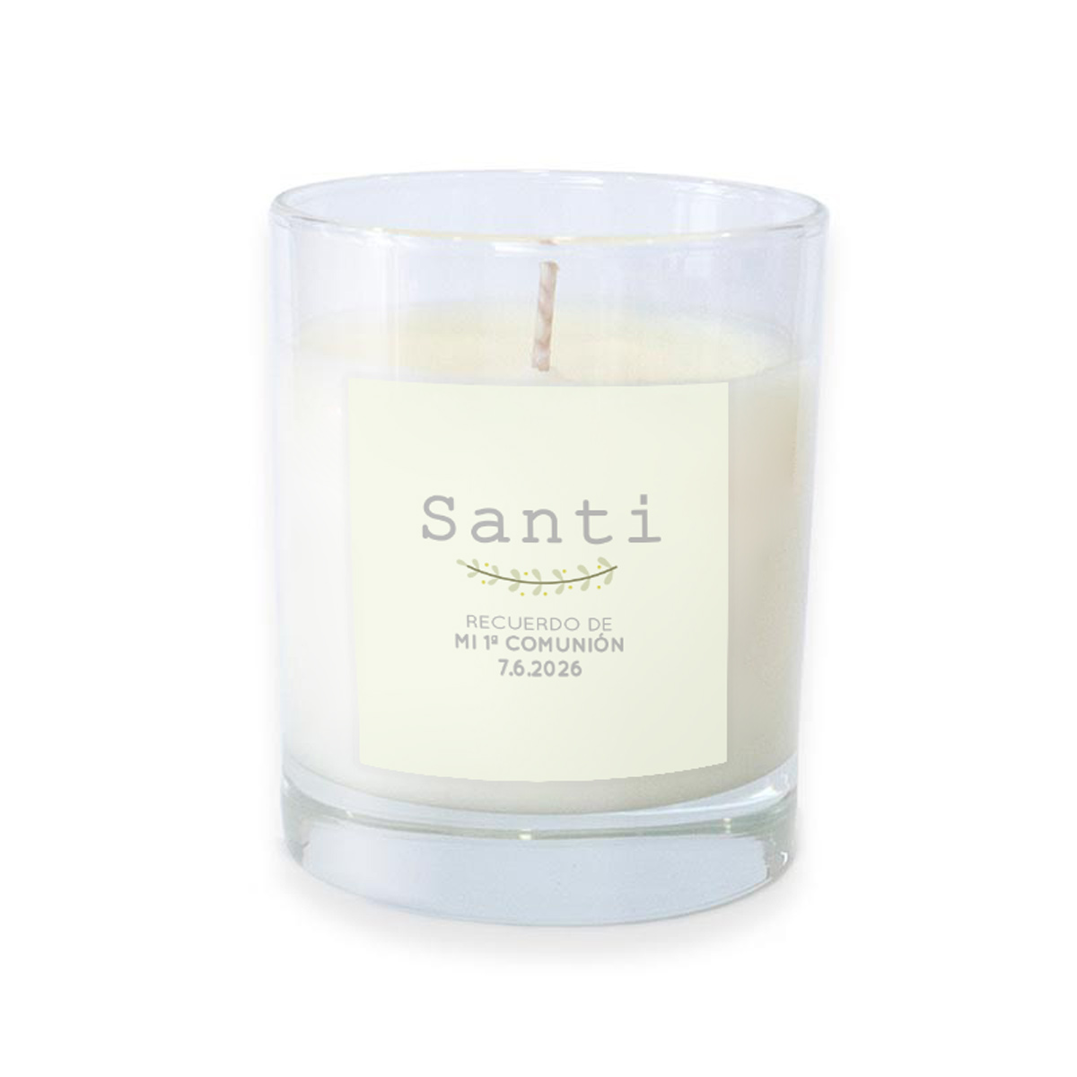 Un detalle elegante, delicado y lleno de luz para celebrar un día tan especial como la Comunión. Esta vela en vaso de cristal es un regalo original que aporta calidez y se convierte en un bonito recuerdo del evento.